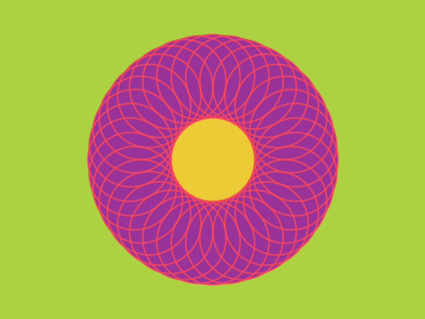 2. We centered a purple circle 300 radius and a yellow circle 100 radius